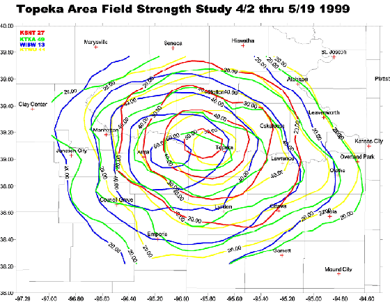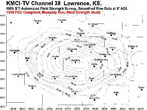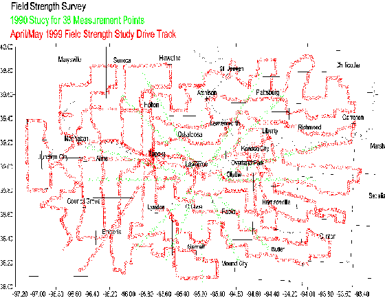Lawrence KS. This map shows both an FCC study overlayed on a drive
